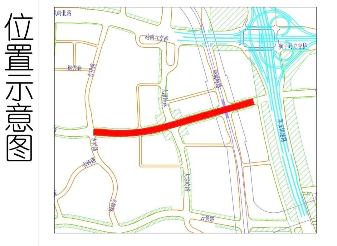 主要公示内容:道路整体呈东西走向,西起佛子岭路与吉祥路交叉口,东至那安快速路西侧。该工程实施长度约1041.173米,实施道路标准红线宽度40米,道路等级为城市主干路,标准横断面采用双幅路形式,设双向6车道,设计速度60公里/时。