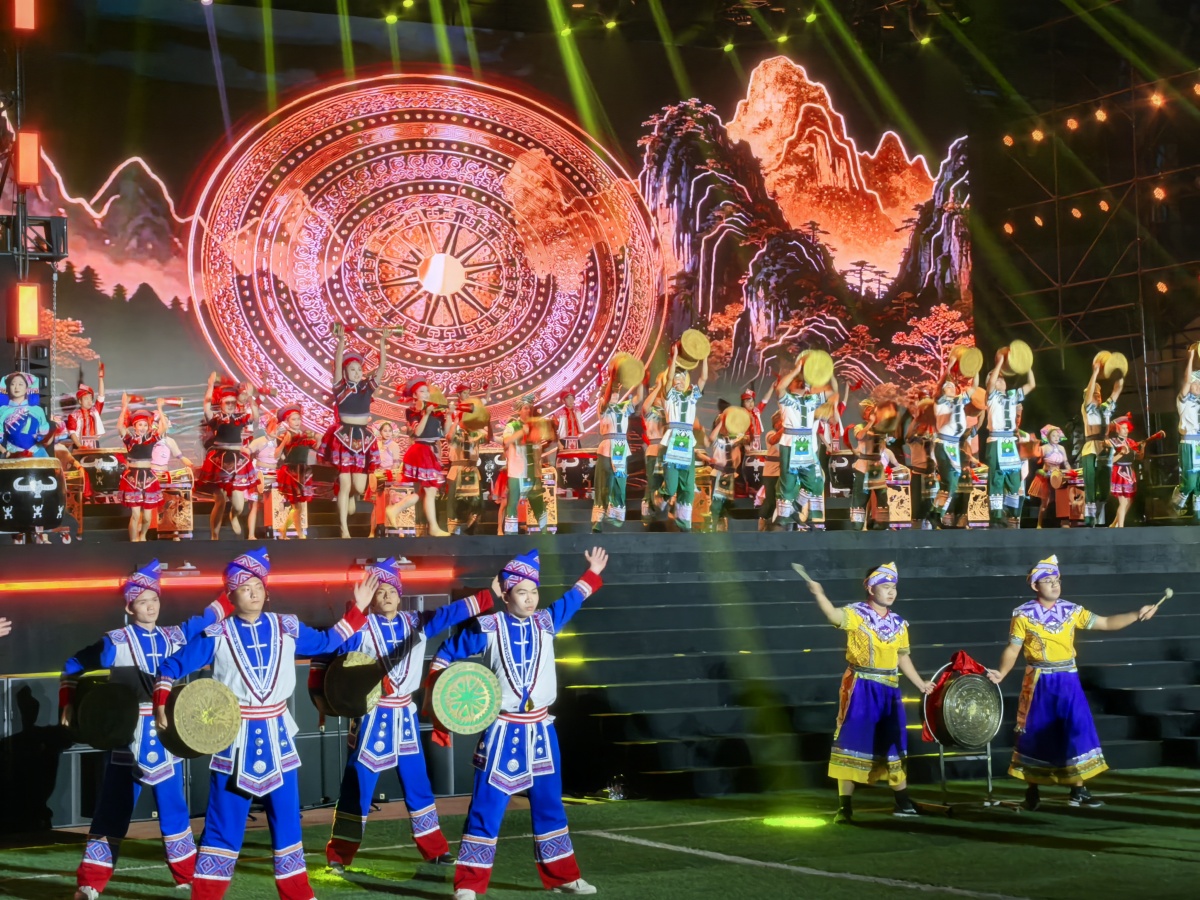 11月14日晚,第二十三届河池铜鼓山歌艺术节开幕式在广西河池市金城江区拉开帷幕。