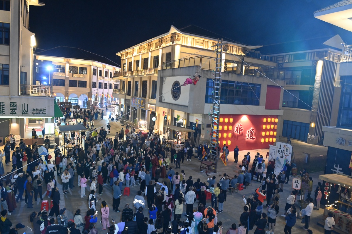 高空中,人在刀刃上漫步,地面上,仰头观看的众人目不转睛……11月29日晚,一场“刀山火海”表演活动在合浦月饼小镇非遗街区开展,吸引市民游客前来观看,街区人潮涌动。