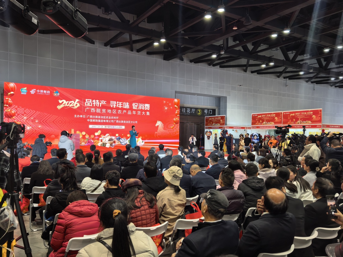 在南宁国际会展中心B2展馆,一场充满烟火气的年货大集正静候市民的光临。1月23日至25日,由自治区农业农村厅、中国邮政集团有限公司广西壮族自治区分公司主办的广西脱贫地区农产品年货大集在这里举行。