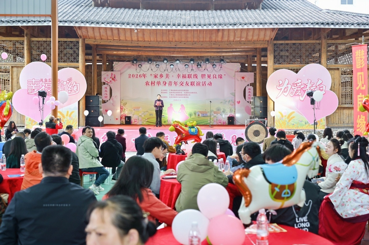 2月5日,一场以“家乡美·幸福联线·鬱见良缘”为主题的交友联谊活动,在北流市新圩镇梧村河石文化园举行。活动由自治区妇联主办,玉林市、北流市妇联等单位共同承办,吸引260余名农村单身青年报名参与。