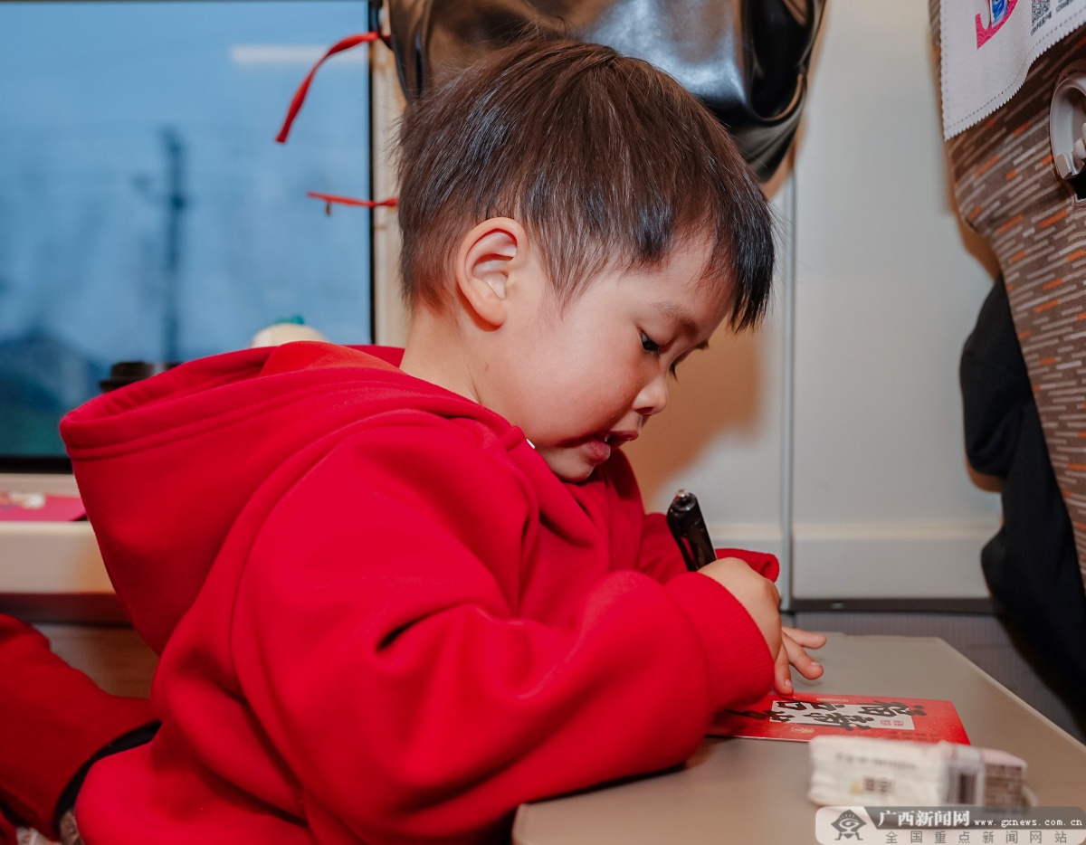 车厢里抽签互动小游戏。记者 卢业深 摄