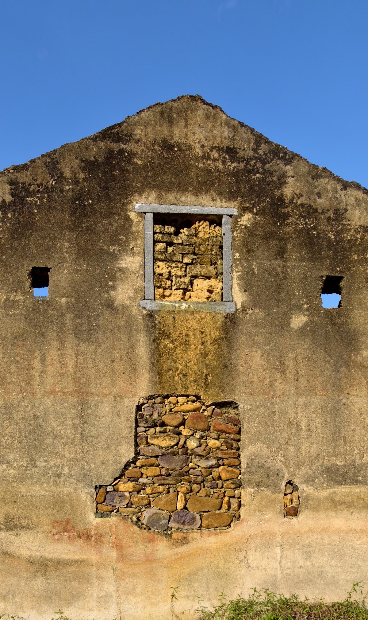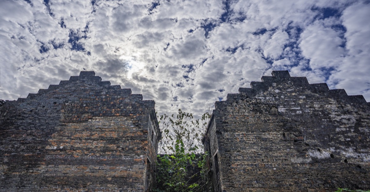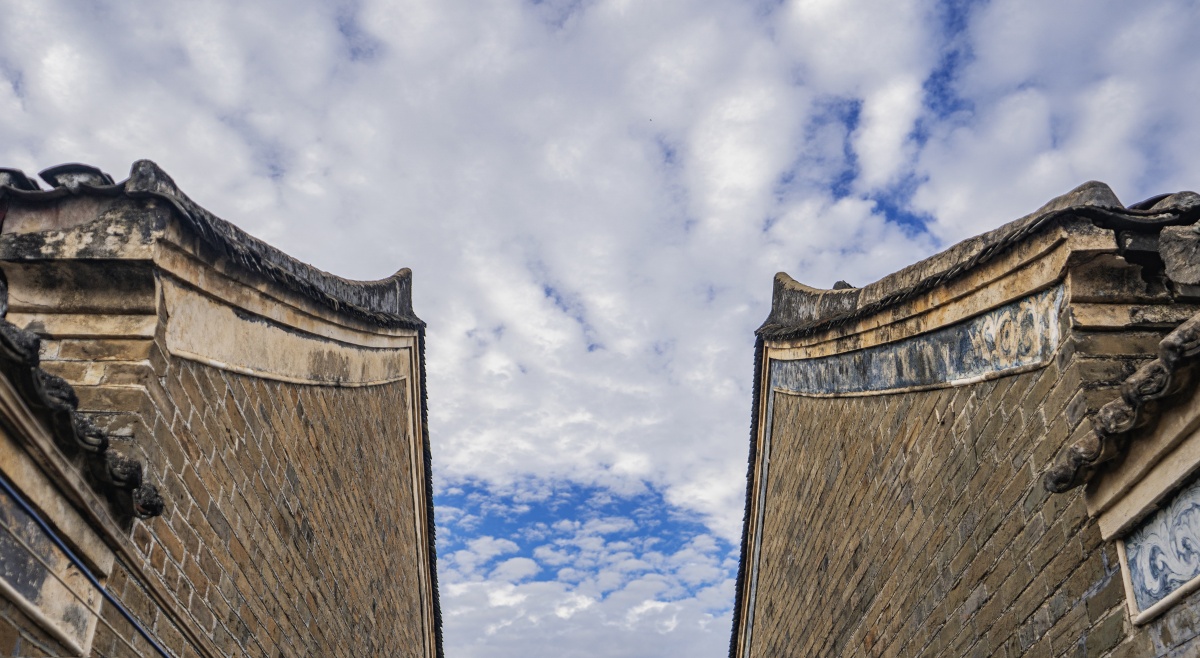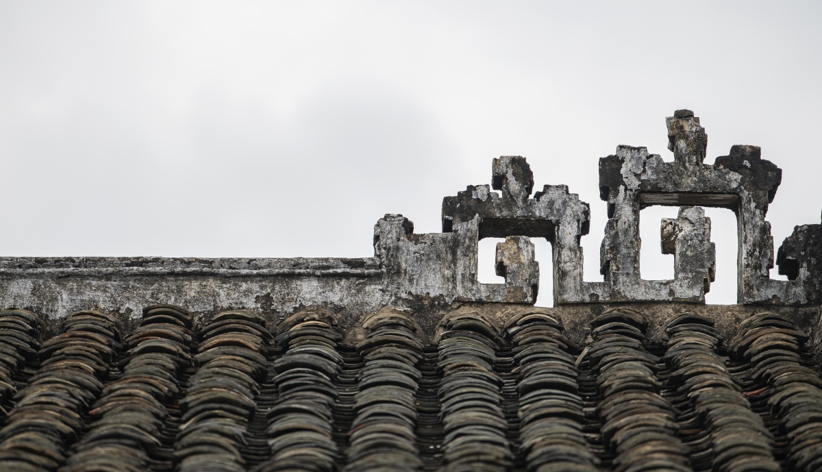 纳禄村古建筑的镬耳山墙局部,残存的装饰纹样尽显沧桑。