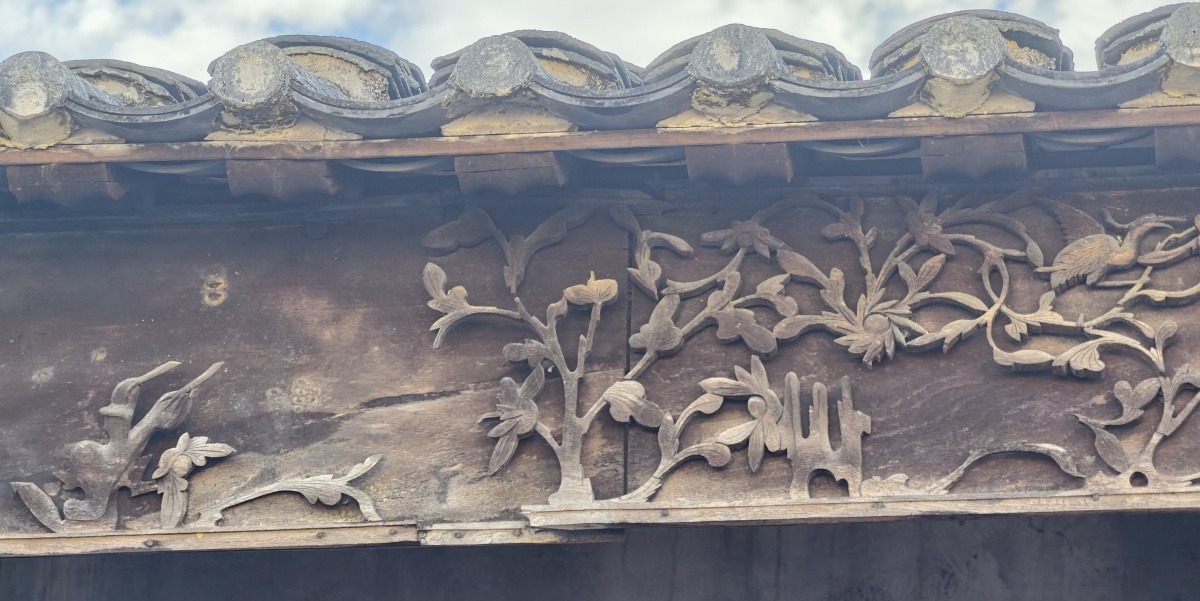 刘月鉴故居檐下木雕细节。
