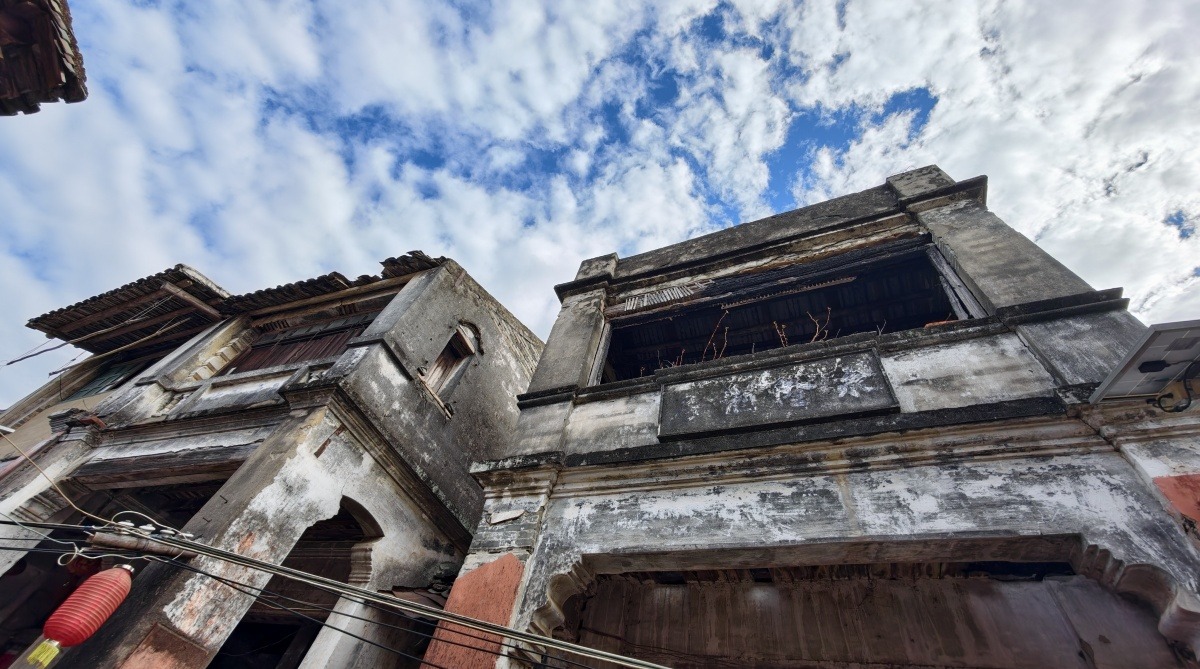 刘月鉴故居斑驳的墙面和古朴的木窗。
