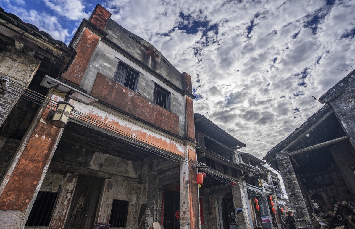 村中民居有骑楼式建筑风格。