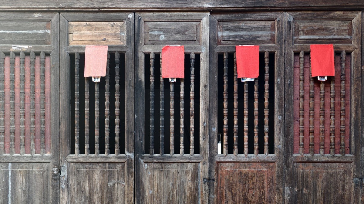 龙腾村古民居精美雅致的花窗格扇。