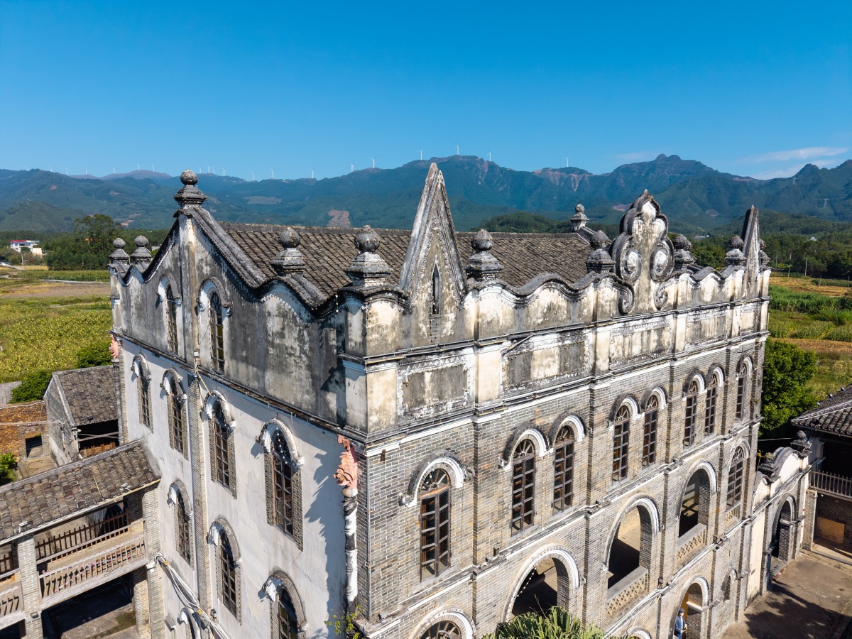刘炳宇庄园融合岭南民居与西方哥特式建筑风格。