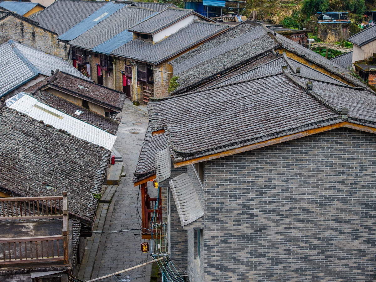 俯瞰龙腾村,青石板铺成的小巷联通着家家户户。