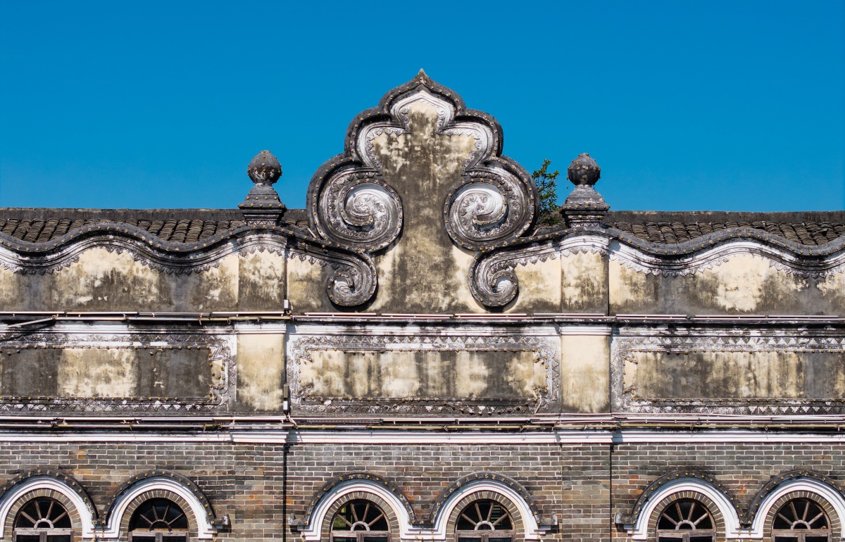 饰有传统纹样的屋顶檐角彰显传统岭南建筑风格。