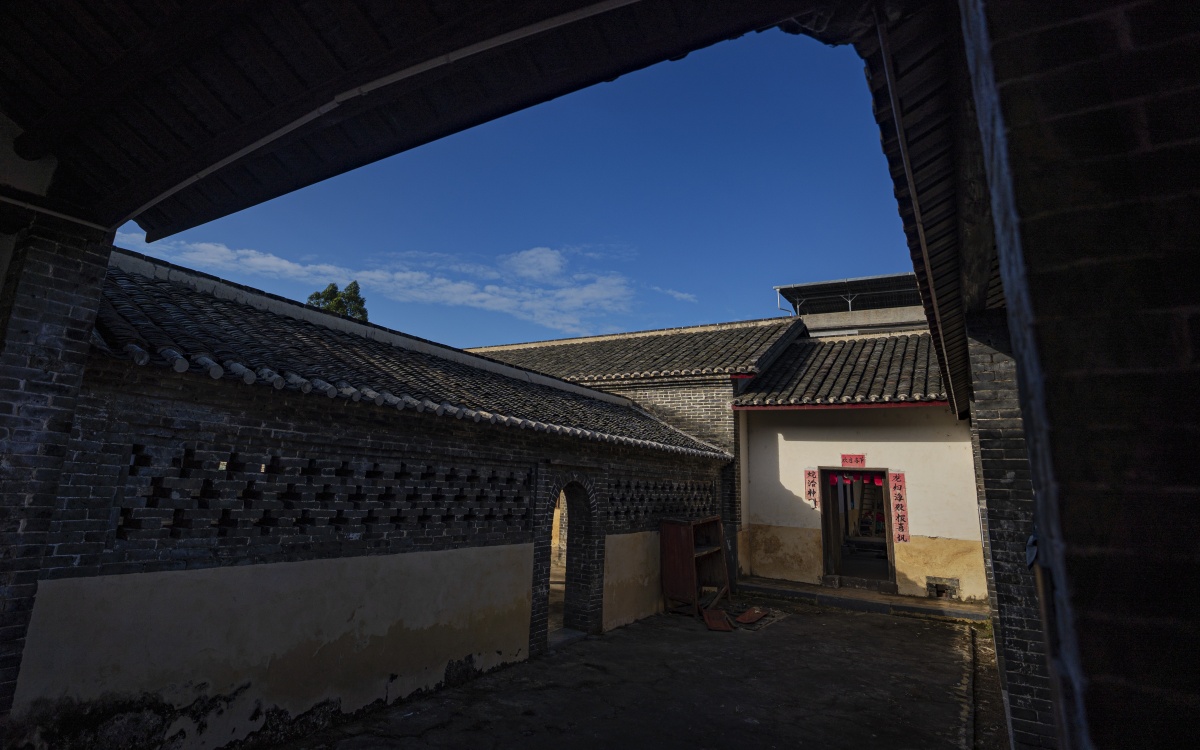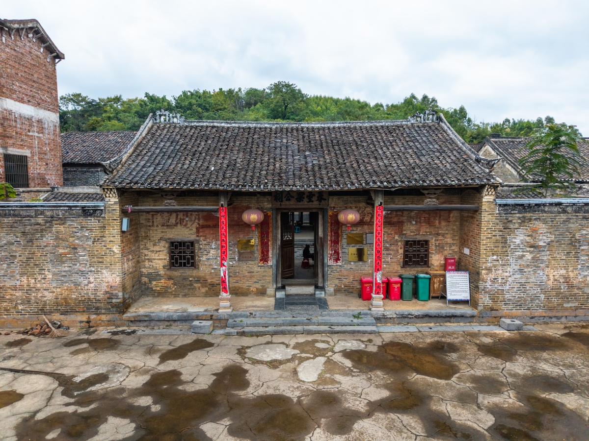 村中有一座保存完好、气势恢宏的清代客家围屋建筑群——刘月鉴故居。这处占地两万余平方米的古建筑群,是民国将军刘月鉴的曾居地。该建筑整体呈传统四合院式布局,青砖与卵石交错垒砌的墙体坚实厚重,小青瓦屋面在山墙搁檩间连绵起伏,朴实而沉稳。