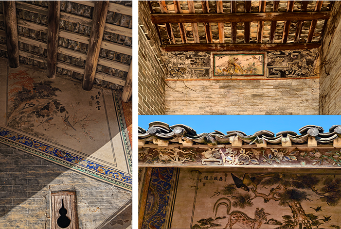 宅中墙上刻画有龙凤、花鸟等图案,历经百年仍清晰可见。