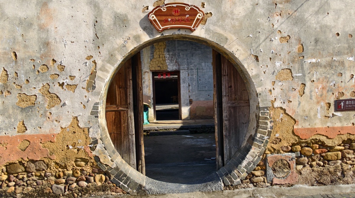 正门前的一方半月池塘倒映天光,既作风水又寓“藏财”之意;侧门而入,一平方米见方的青石板步道引领向前。第二道门内是庄严的祠堂,晴日里晒坪上铺满金黄的稻谷,烟火气与祖先香火在此交融。祠内每一扇窗都由整石雕琢而成,正门两根石柱巍然屹立,神龛上“彭城堂”三字诉说着家族名望,侧门槛上精雕的金钱纹则寄寓着对丰衣足食的祈盼。巷陌间,东乡特有的马卵石铺地,古朴而自然。